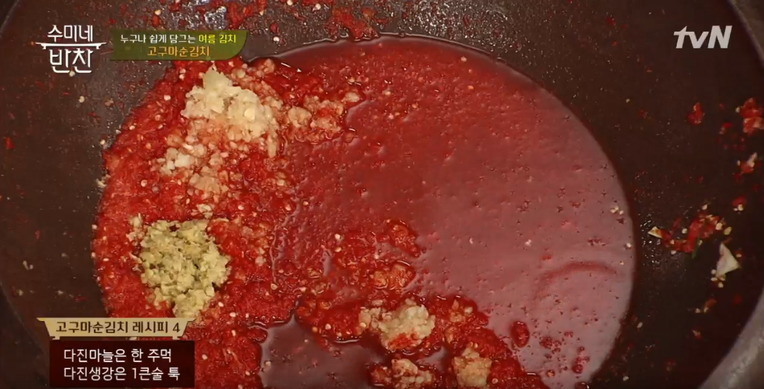종영되어 아쉬운 수미네반찬입니다. 믿고보는 김수미님 레시피인데요. 역시 김치도 따라하면 정말 맛있게 되었었네요. 다양한 김치 담그는 법을 알려주셨는데, 색다른 김치인 고구마줄기김치 담그는법은 정말 꿀팁이었어요.