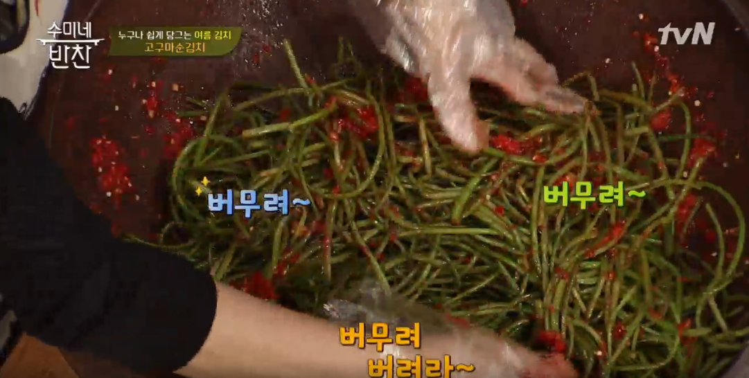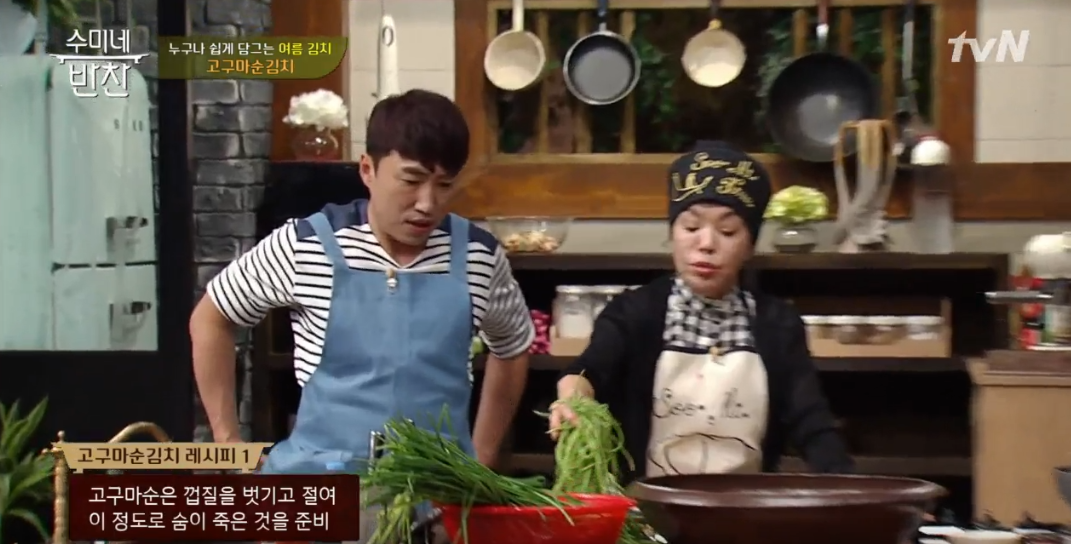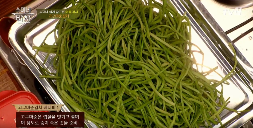종영되어 아쉬운 수미네반찬입니다. 믿고보는 김수미님 레시피인데요. 역시 김치도 따라하면 정말 맛있게 되었었네요. 다양한 김치 담그는 법을 알려주셨는데, 색다른 김치인 고구마줄기김치 담그는법은 정말 꿀팁이었어요.
