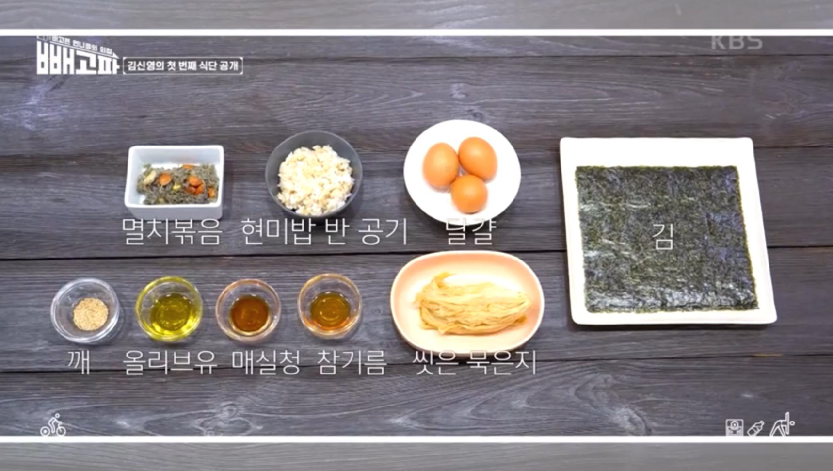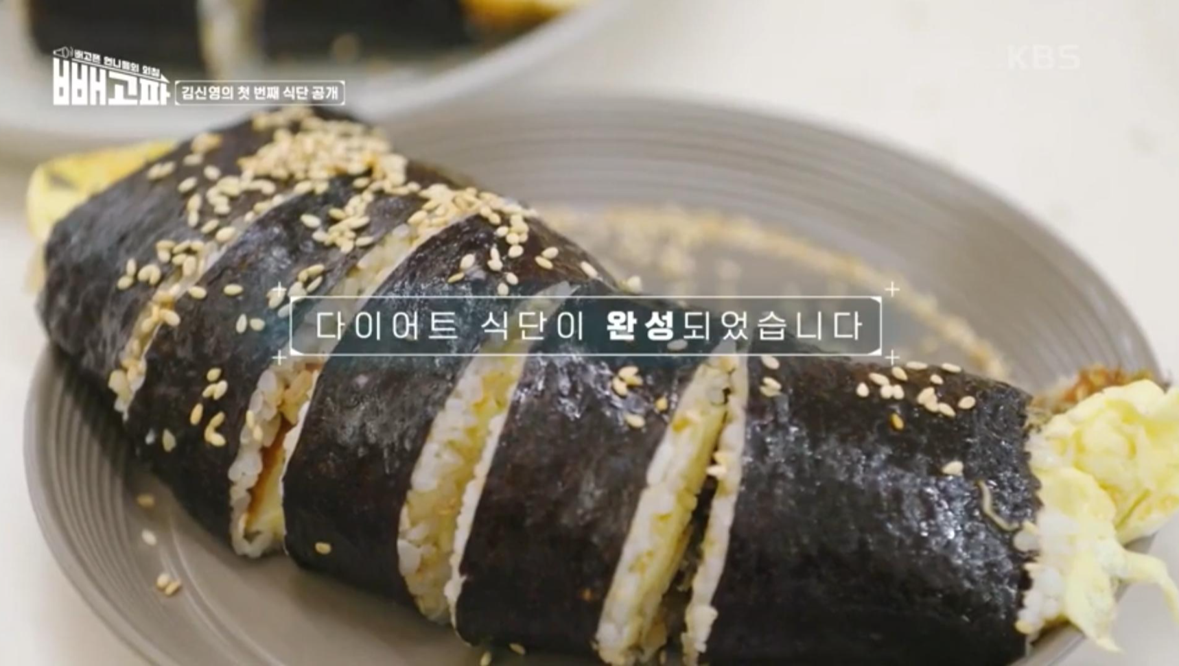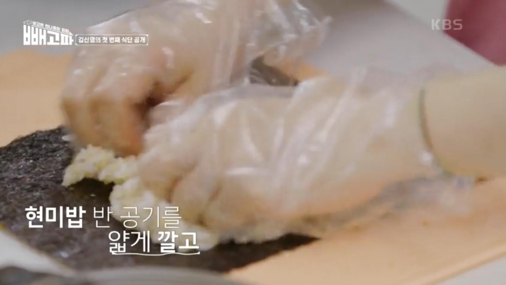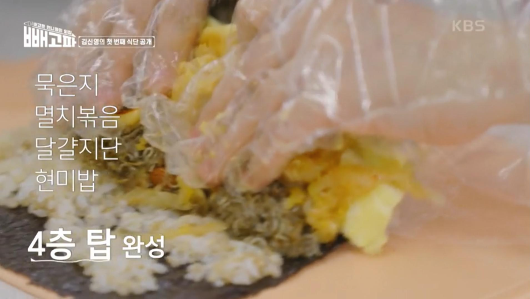 게다가 밥에 빠질수 없는 김치까지 들어가니 너무나 맛있는 식단이네요. 김신영이 첫번째로 선보인 다이어트 식단은 바로 '현미김밥'이예요.