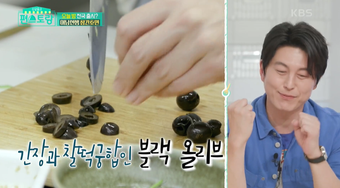 6. 여기에 그만의 특별비법에 등장하는데요. 바로 블랙올리브! 간장과 찰떡궁합이래요. 오~~ 맛이 궁금해요. 보통 블랙올리브라고 하면 피자가 스파게티에 들어가는 식자재잖아요. 간장과 어떤 조화일지 기대가됩니다.