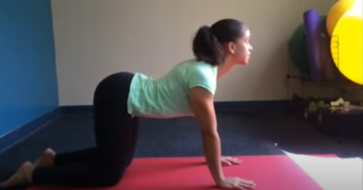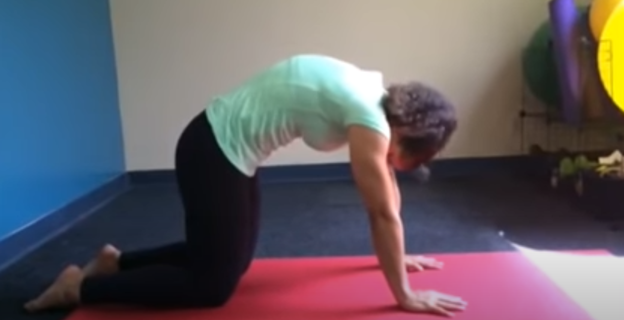 무릎을 굽히고 팔을 뻗어 엎드린 상태에서 최대한 허리를 펴서 하늘을 보고, 최대한 허리를 굽혀서 땅을 보는 자세를 반복합니다.