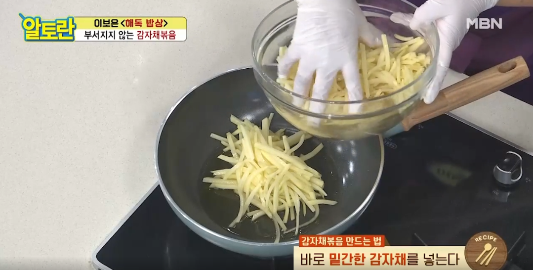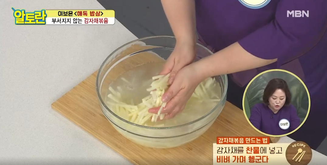 쉬운 요리이지만 막상 맛있게 만들기는 까다로운 감자채볶음을 알토란에서 요리연구가 이보인님이 알려주신 꿀팁입니다.