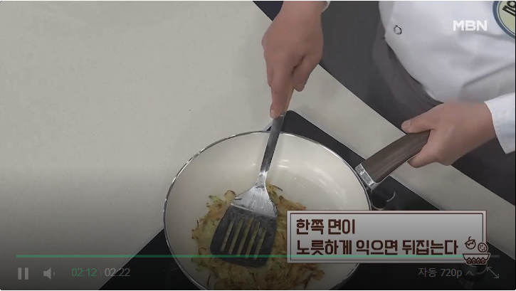 한쪽면이 노릇하게 충분히 익으면 뒤집어서 익혀줍니다.
