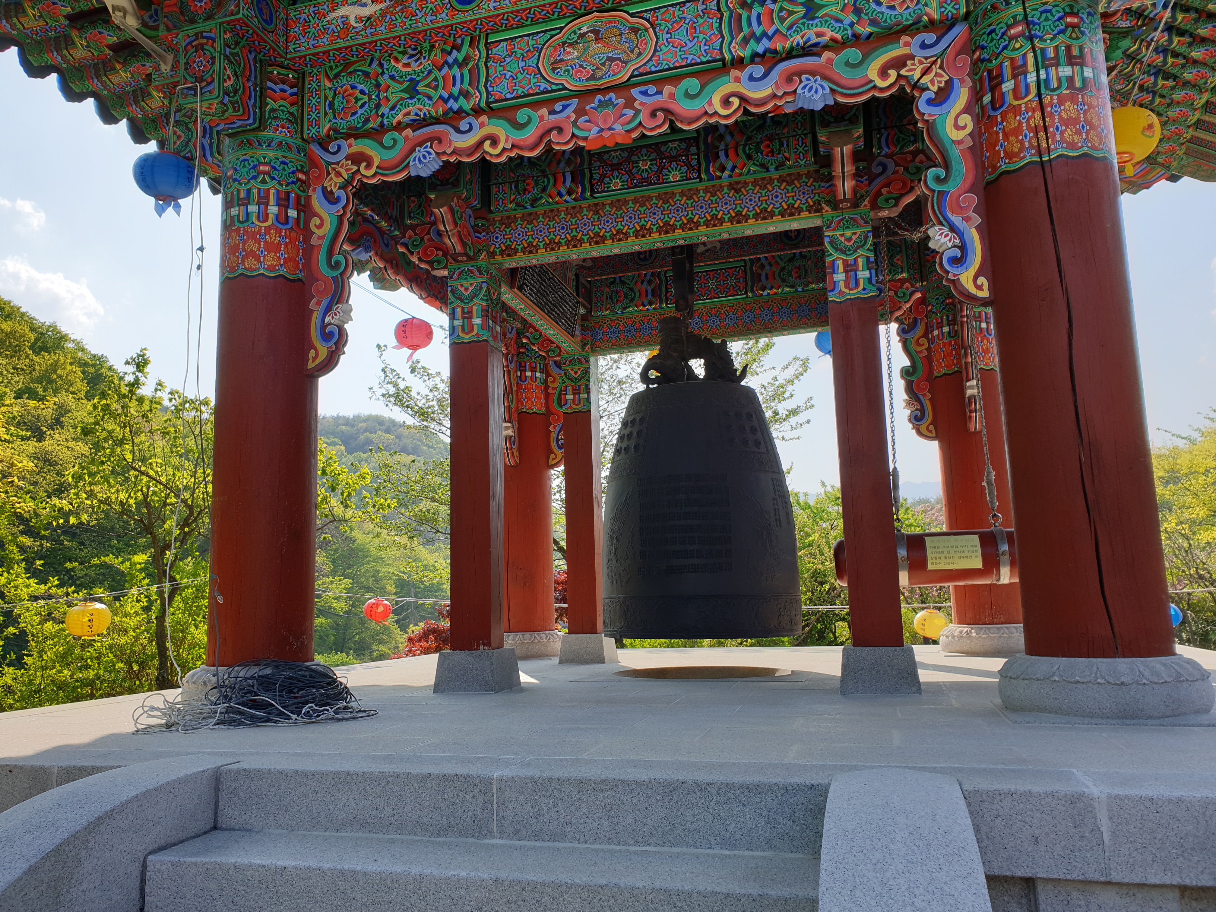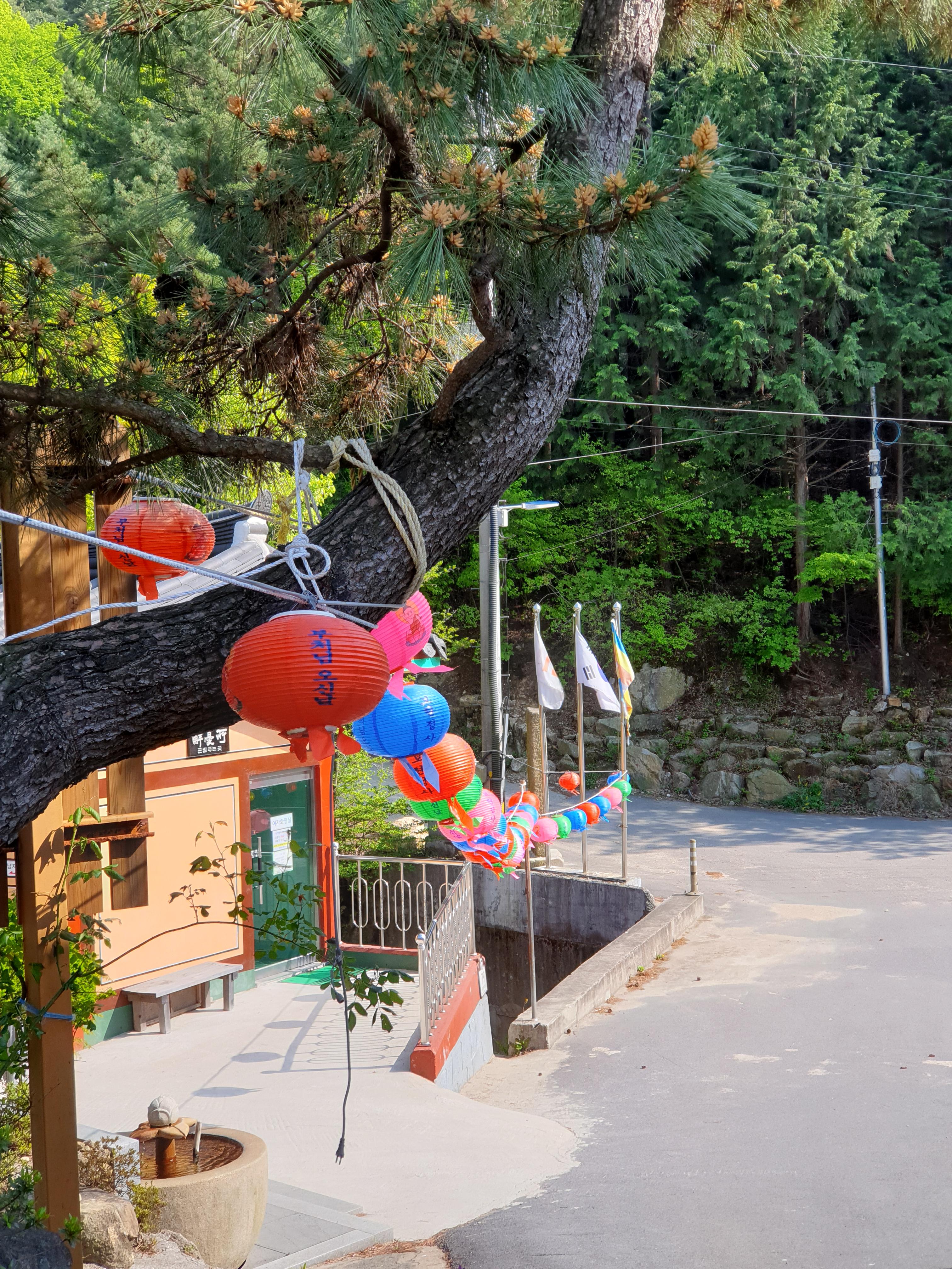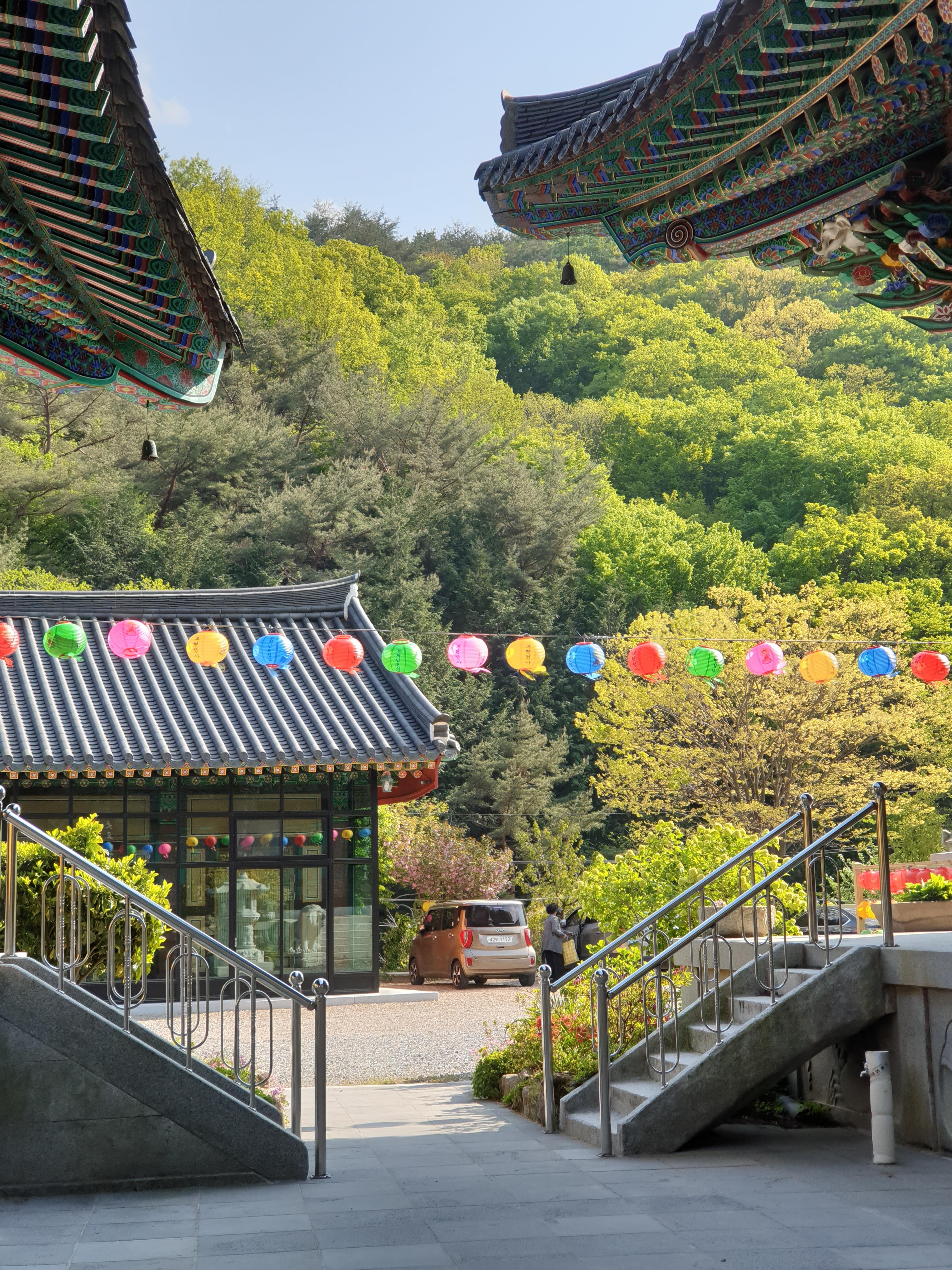 부처님 오신날을 앞두고, 절 내부를 단장하고 있는 모습이었어요. 알록달록 연등이 주렁주렁 달려있네요.
