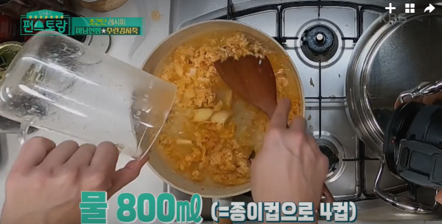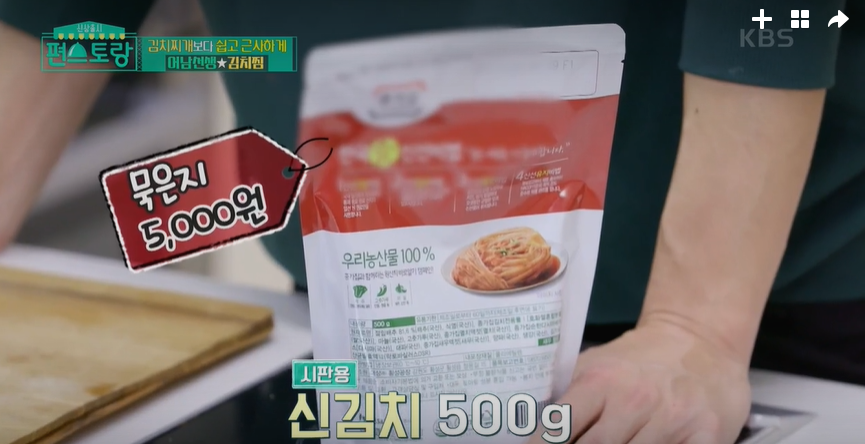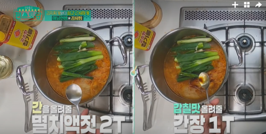 양념은 간장, 설탕, 멸치액젓이 전부이구요. 꼭 맛있는 신김치를 사용해야한다면서 어남선생이 선택한 재료는 '종가집 묵은지'네요. 모자이크로 가렸지만 보여요. ㅎㅎㅎ