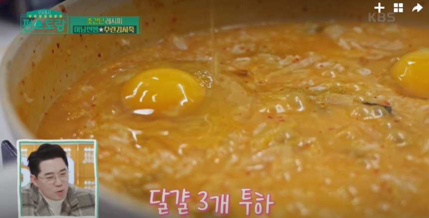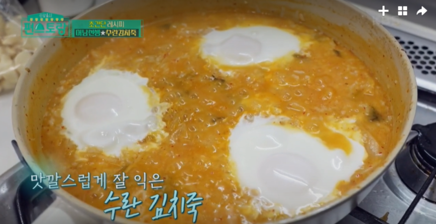 김치찜 끓이는 동안 류수영은 김치죽도 함께 선보였는데요. 아침식사로도 너무 좋을것 같은 김치죽이예요.