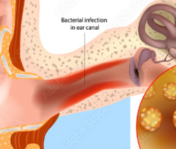 외이도염의 가장 흔한 원인은 대장균, 황색포도상구균, 연쇄상구균 등과 같은 세균의 감염입니다. 또한 아스페르길루스와 칸디다균과 같은 곰팡이균(진균)의 감염입니다.