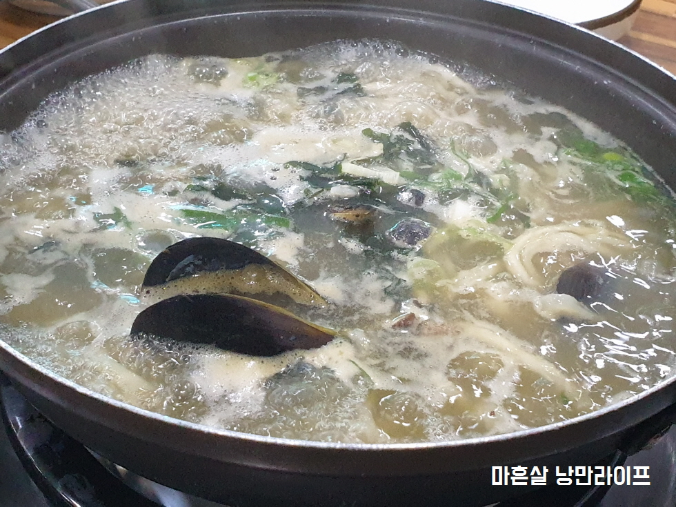 우리가족의 입맛에는 살짝 짠듯한 느낌이긴 한데, 그래도 보말과 홍합이 들어이써서 감칠맛이 너무 좋아요. 칼국수면도 쫄깃하구요.