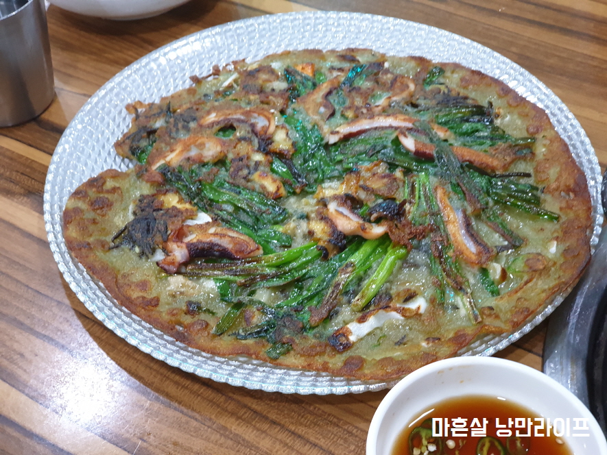 제가 마음에 들어했던 톳부추전이예요. 가장자리에 바삭바삭하니 너무 맛있더라구요. 톳이 들어간건지 잘 못느낄정도구요. 파전과 거의 비슷해요.