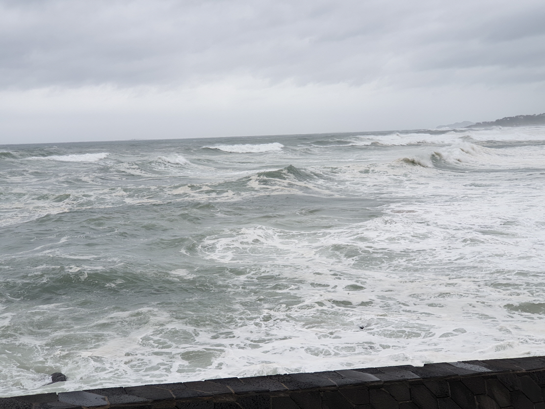 에휴... 설레는 마음으로 제주도에 도착했지만 제주 날씨가 너무 안좋아요. 며칠 바람이 강하게 불었다고 하더라구요. 파도가 너무 세서 해수욕장은 입수 금지이고, 해변쪽에 치는 파도를 보니 움찔움찔할 정도로 무섭네요.