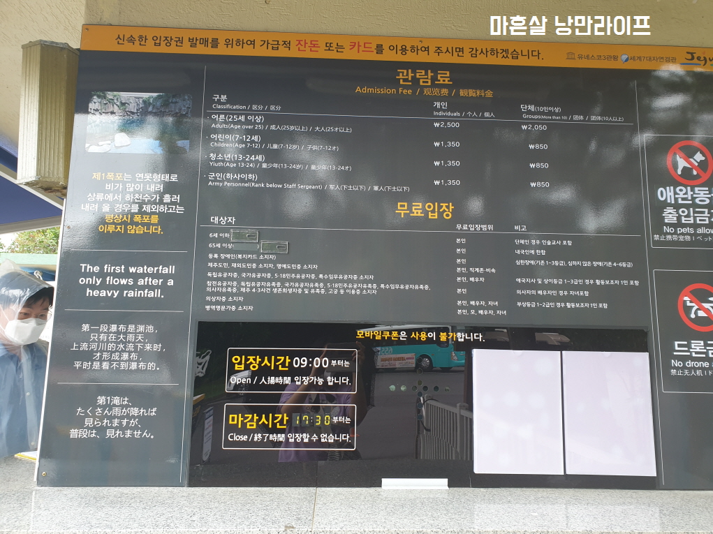 관람료는 어른 2500원, 어린이 1350원으로 그리 비싸지않아요. 많이 더운 날씨가 아니라서 이런날 관광을 해야하지 않겠어요?