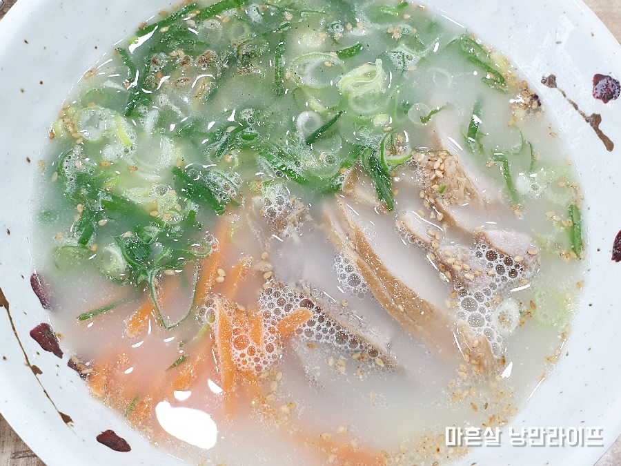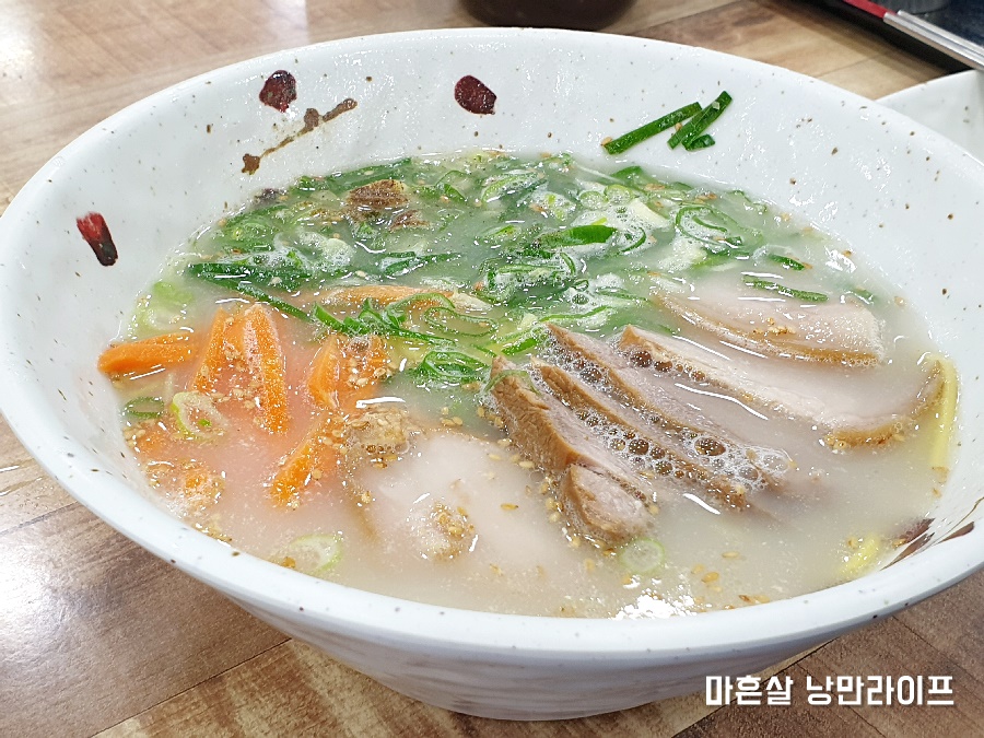 느끼할만큼 진하고 고긱향이 풍부하진 않아도 충분히 맛있습니다. 도톰한 중면 면발도 괜찮구요.