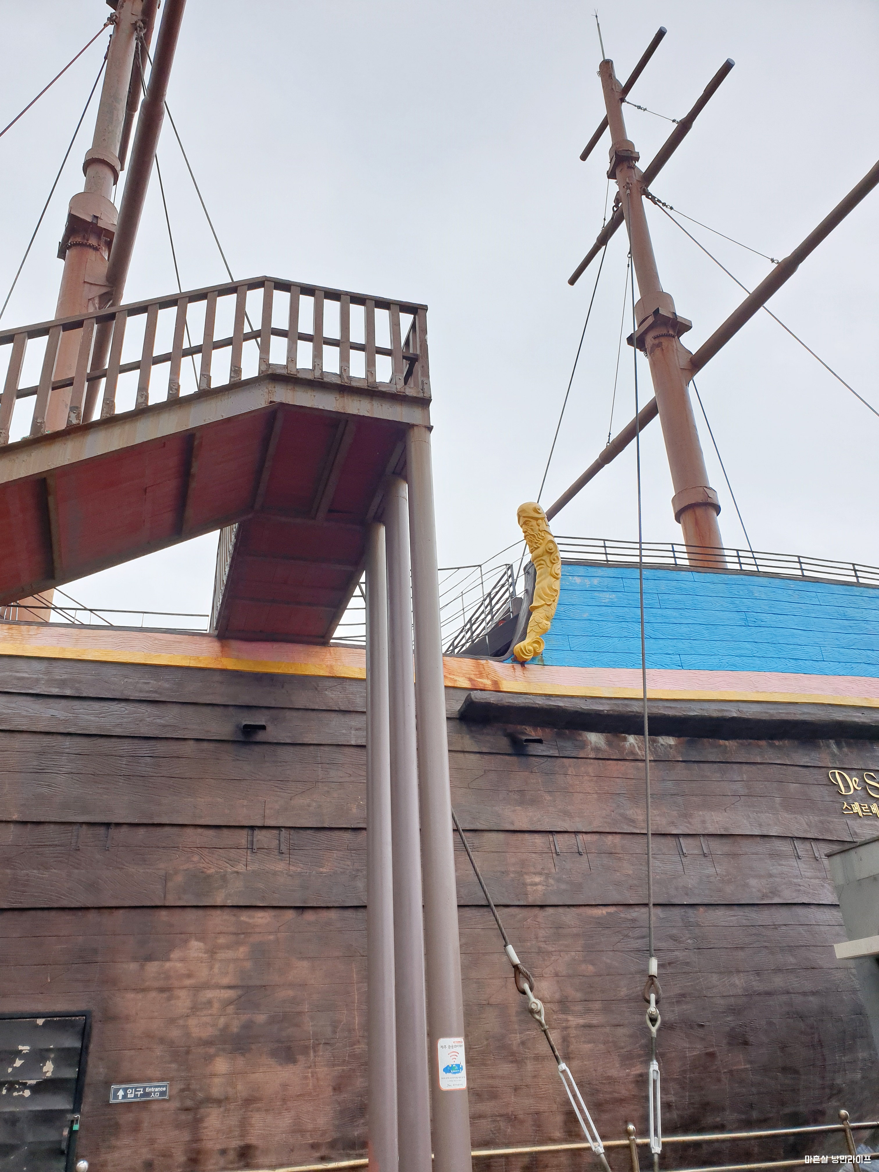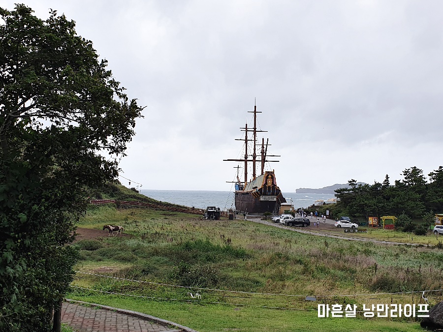 숙소와 화순금모래 해수욕장사이에 위치한 하멜상선입니다. 하멜상선은 용머리해안 근처에 있는데요. 모형 배인가 싶었는데 규모가 생각보다 크네요. 그러나 배위 관람은 중지된 상태였어요.