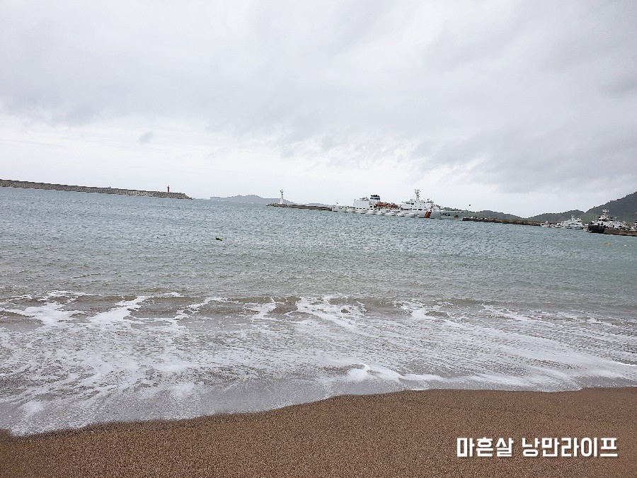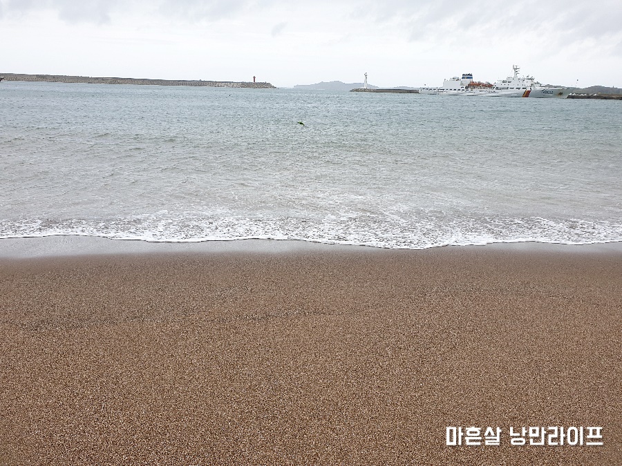 파도가 거세어 해수욕을 하는 사람은 아무도 없었어요. 금모래해수욕장이라는 이름답게 모래가 아주 부드럽고 곱네요. 맨발로 걸어다니면서 바닷물에 발을 담궜습니다.