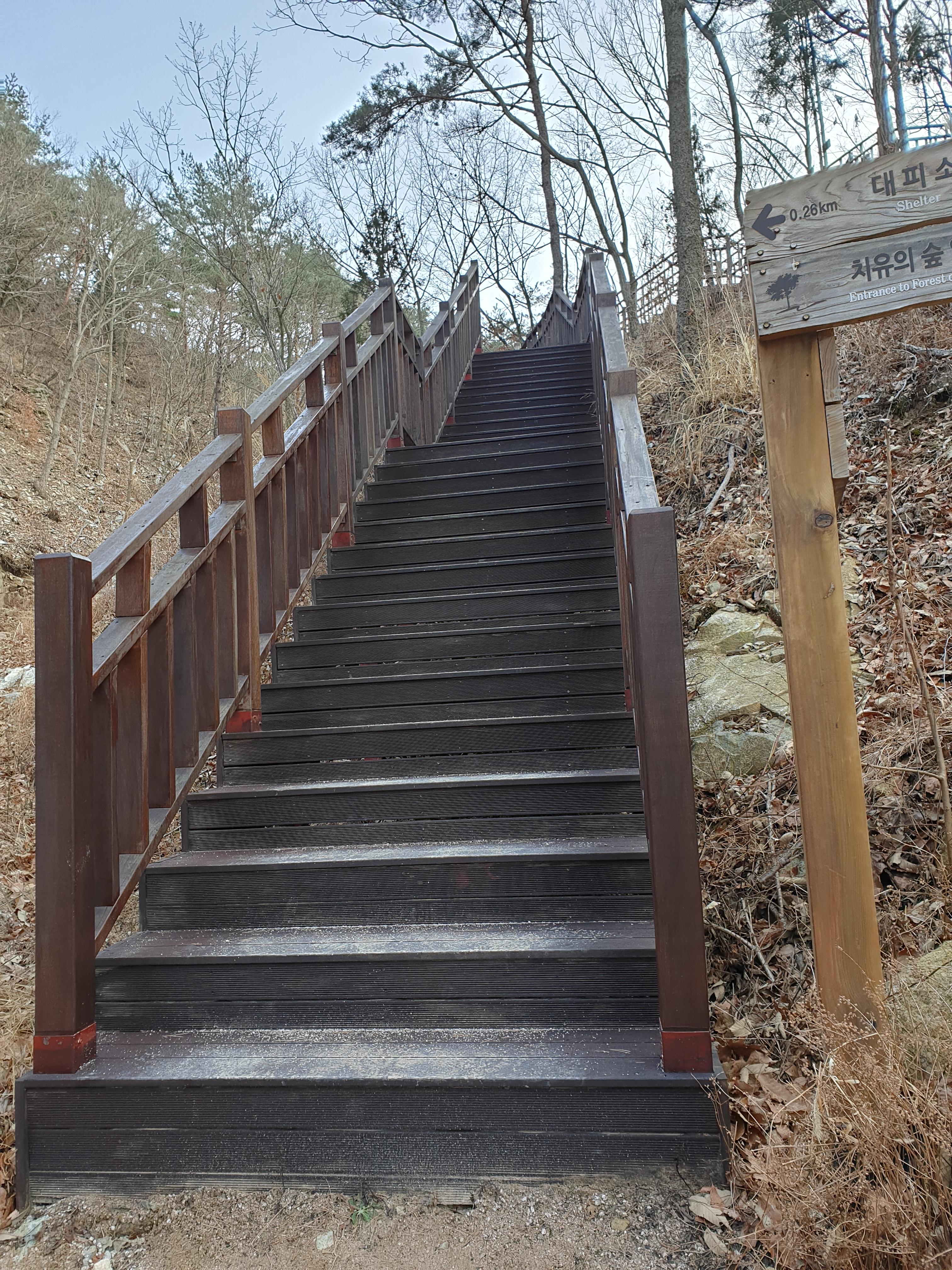 산책길의 끝자락, 마지막을 장식하는 계단이 나왔어요. 저는 운동부족이라 끝까지 올라가는데 두번은 숨을 골라야했네요.