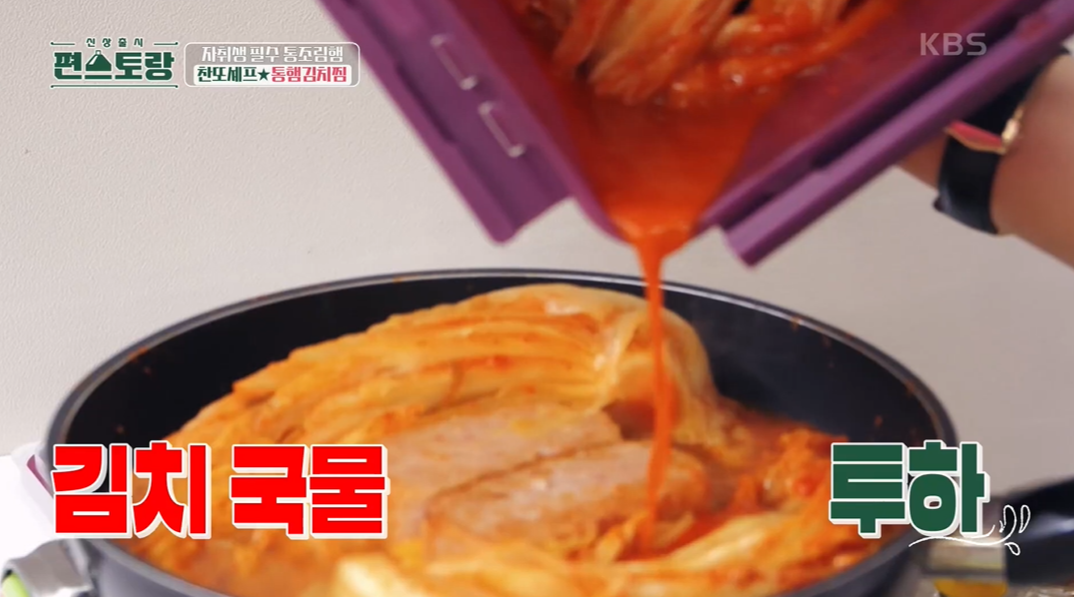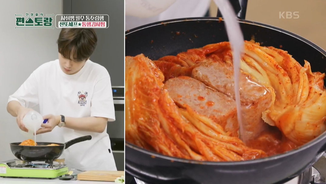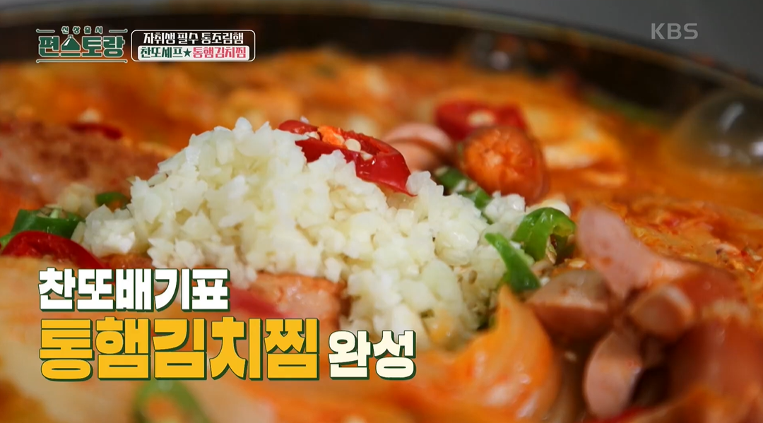 저번주 편스토랑에서 선보인 '통햄 김치찜'은 누구나 쉽게 할 수 있지만 맛은 보장되어있는 레시피라서 들고와 봤습니다.