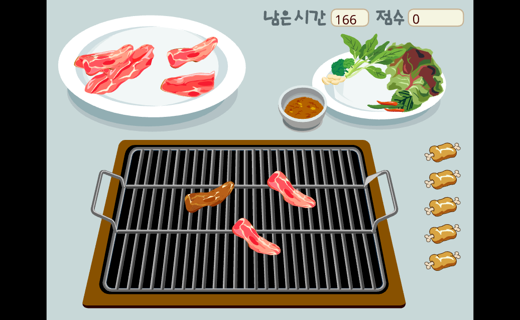'줌마의 고기굽기'도 재밌어요. 은근 어렵다능...