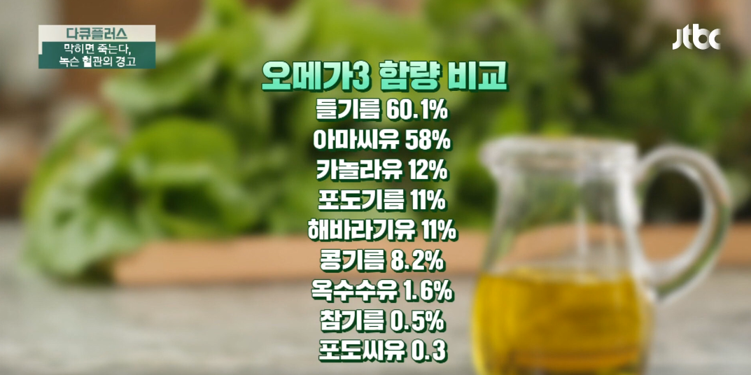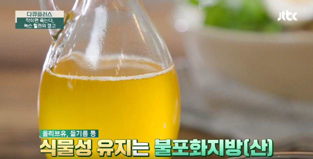 바로 우리 흔히 먹는 올리브유와 들기름에 들어있는 식물성 유지에 불포화지방산이 많이 함유되어있습니다.